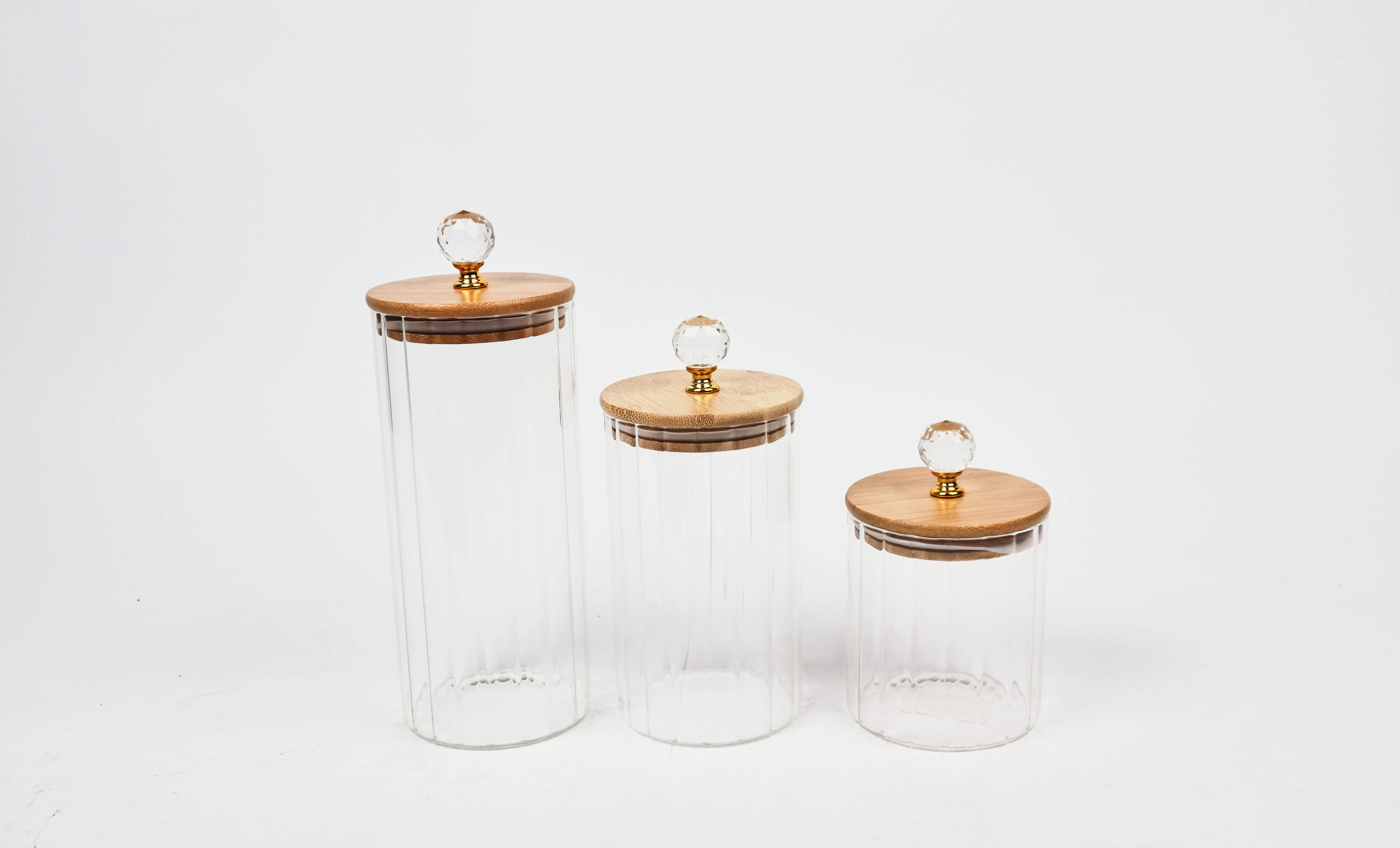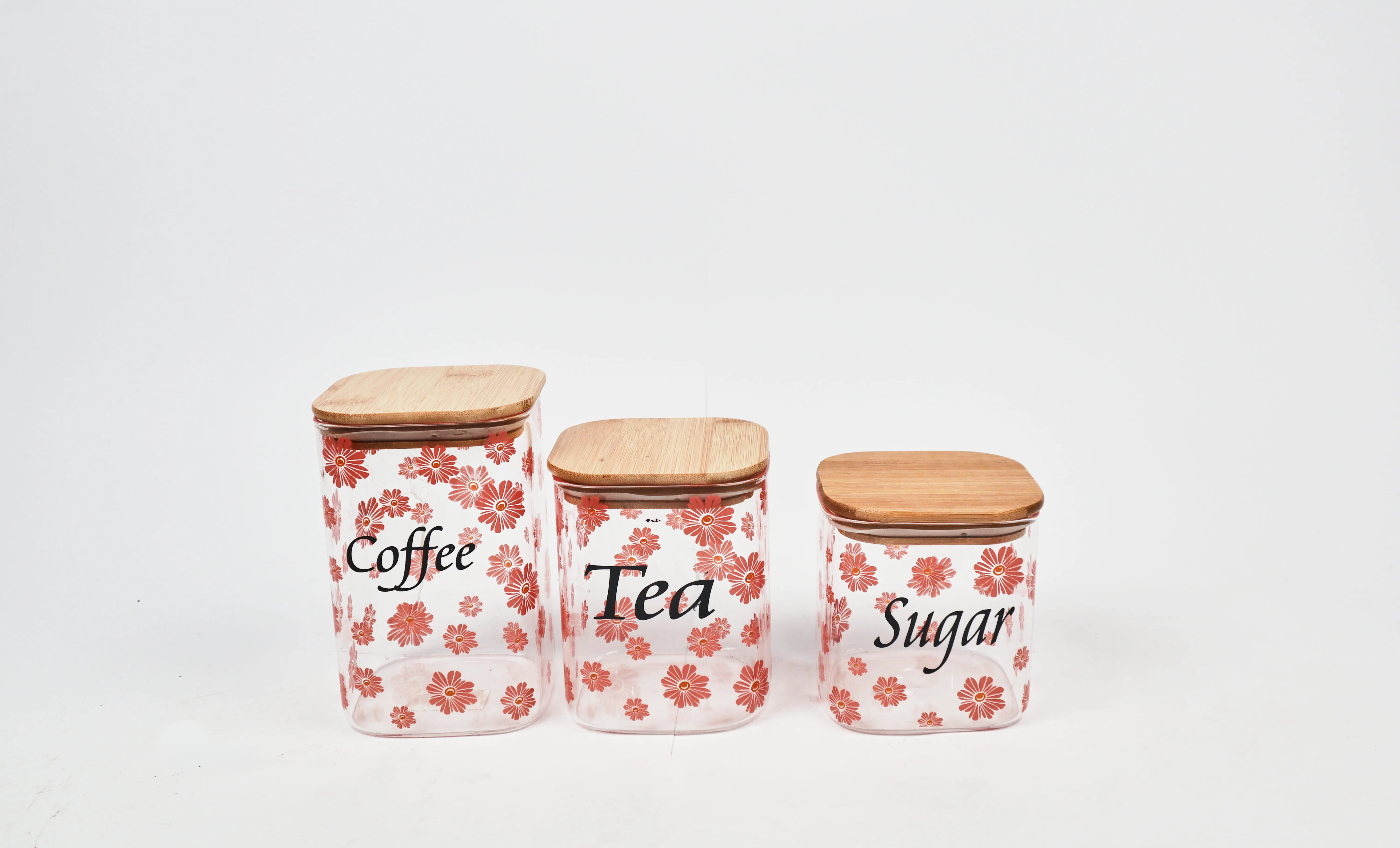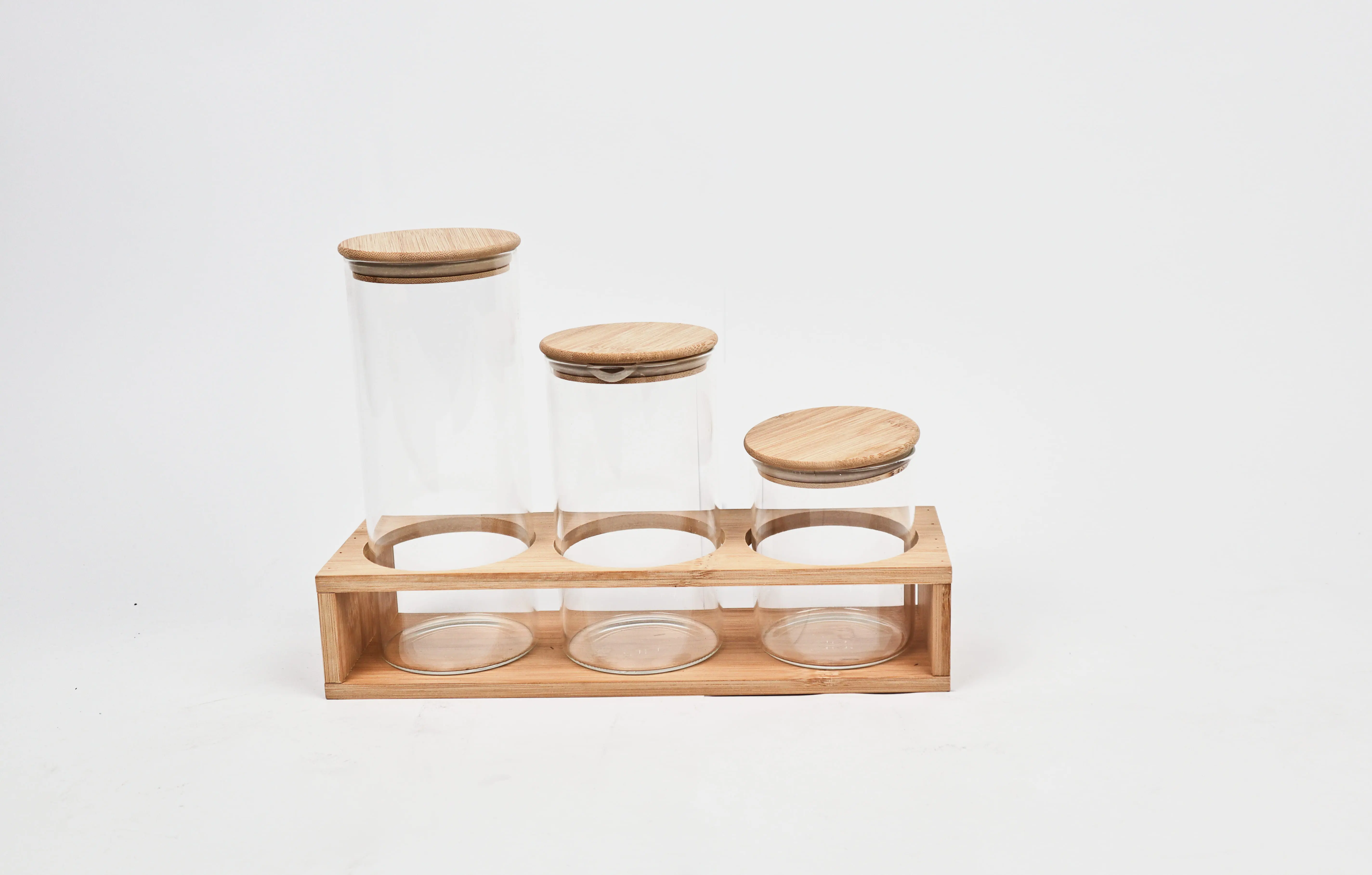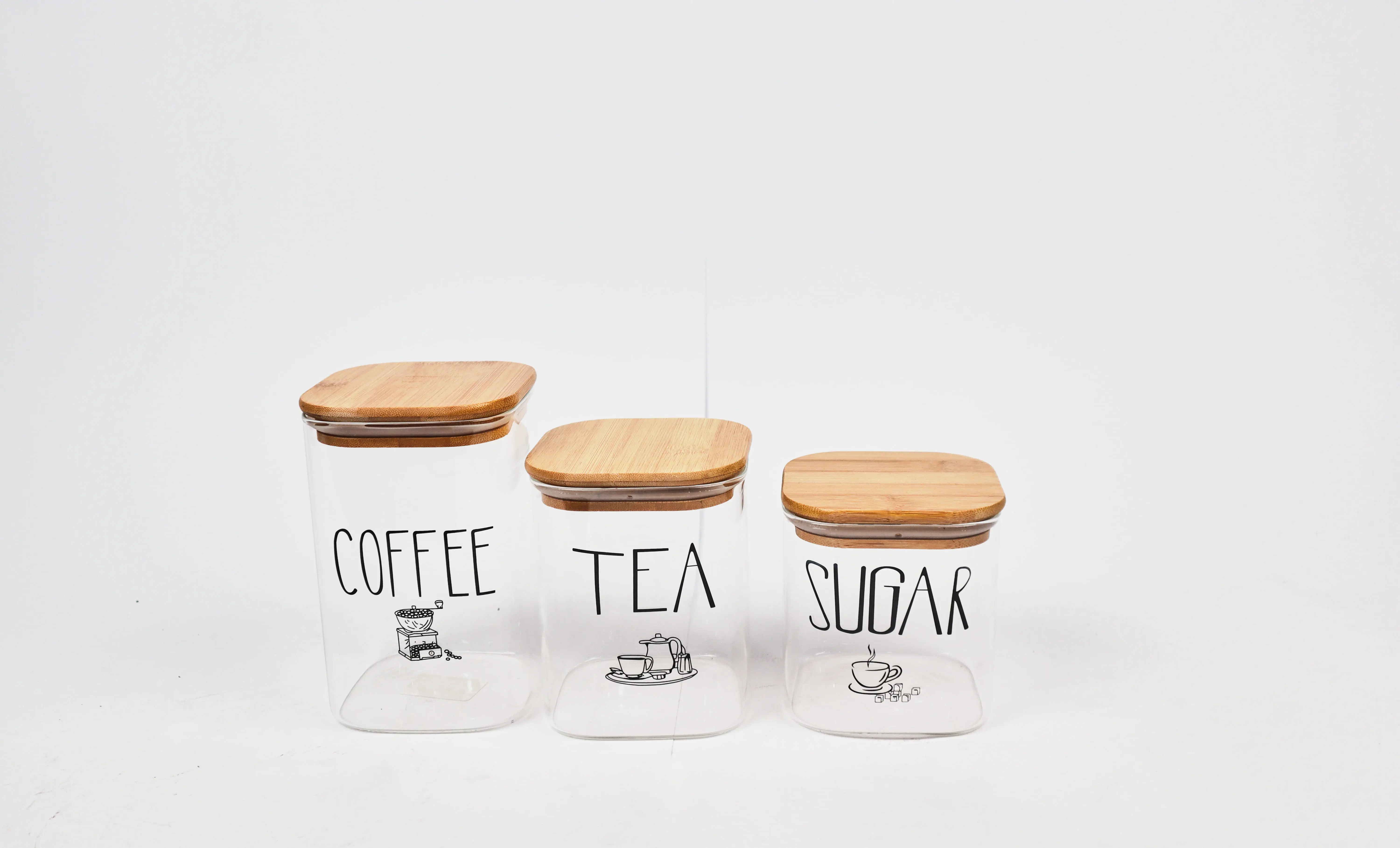 AHI 1-9 Square Jar Set with Wooden Lid, 3 Pieces