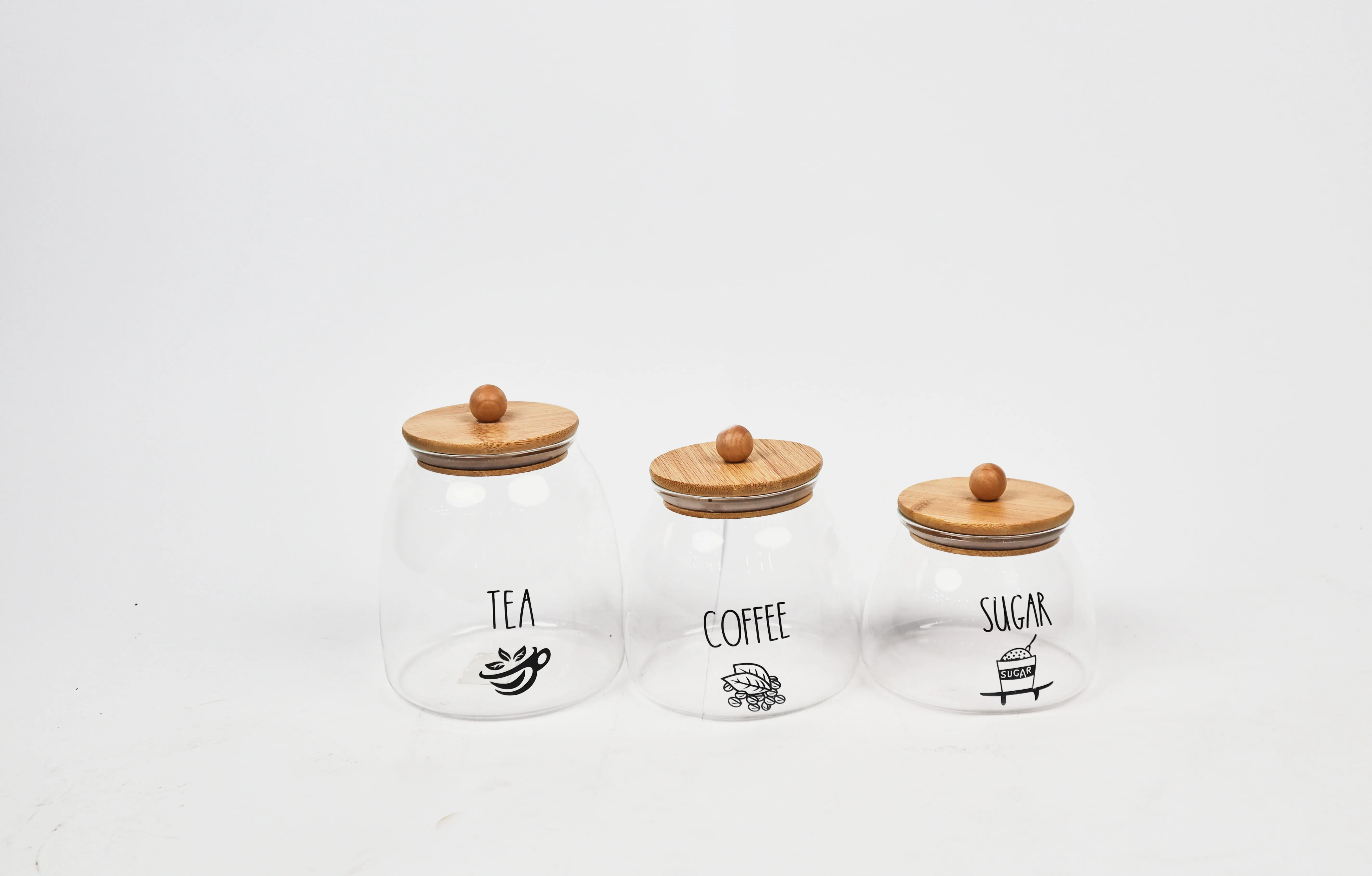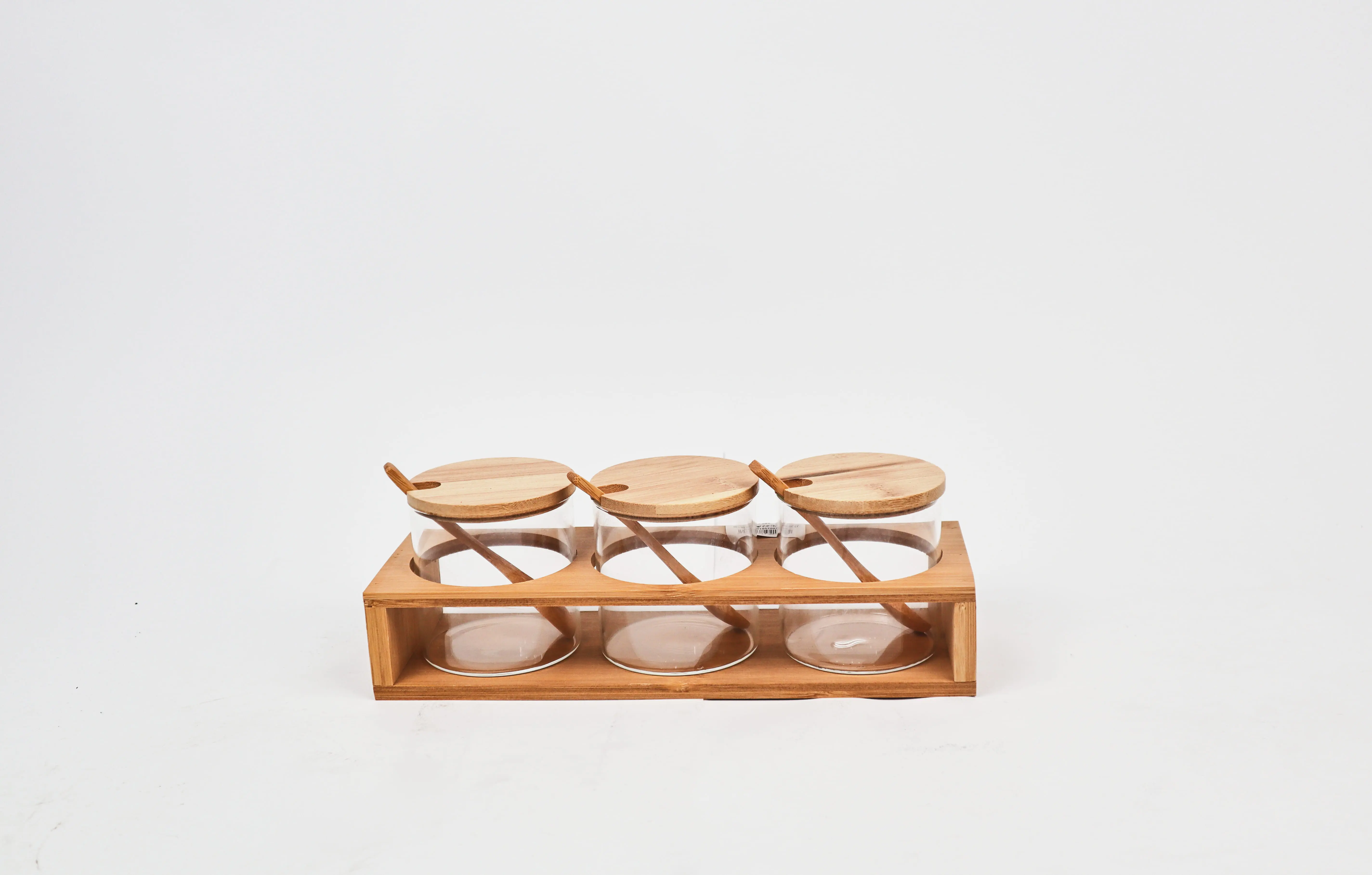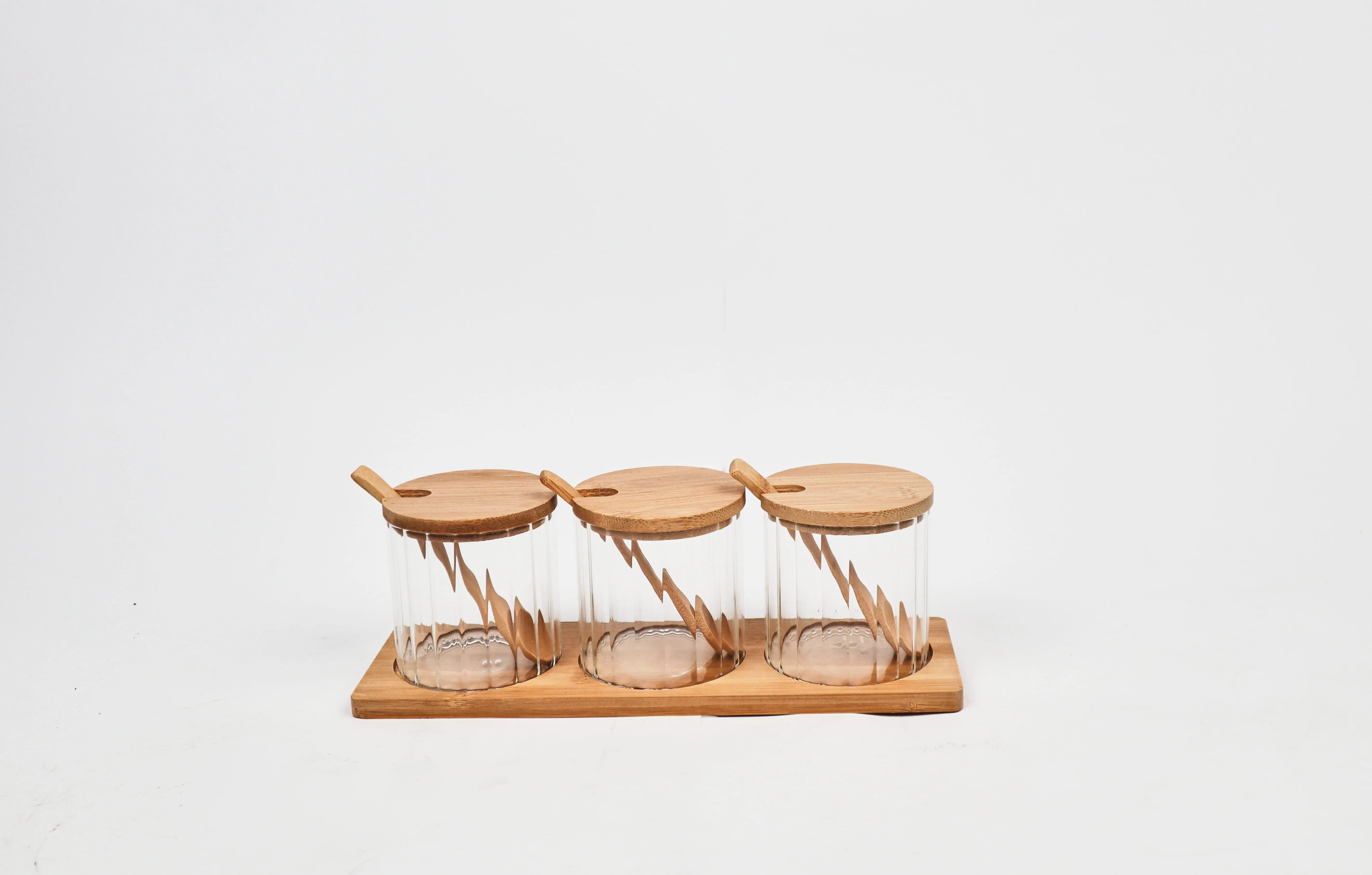 AHI1-4 Glass Spice Set with Wooden Lid, 3 Pieces